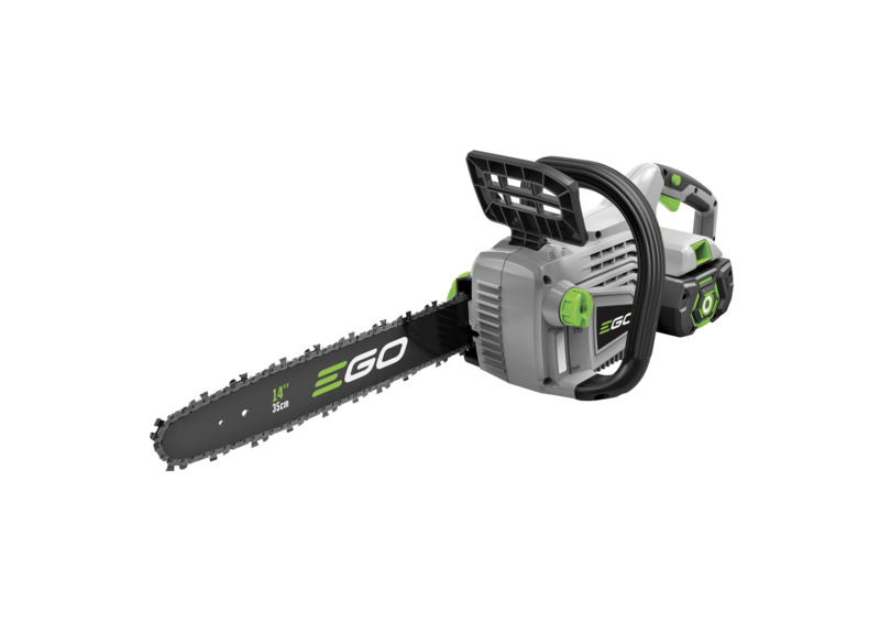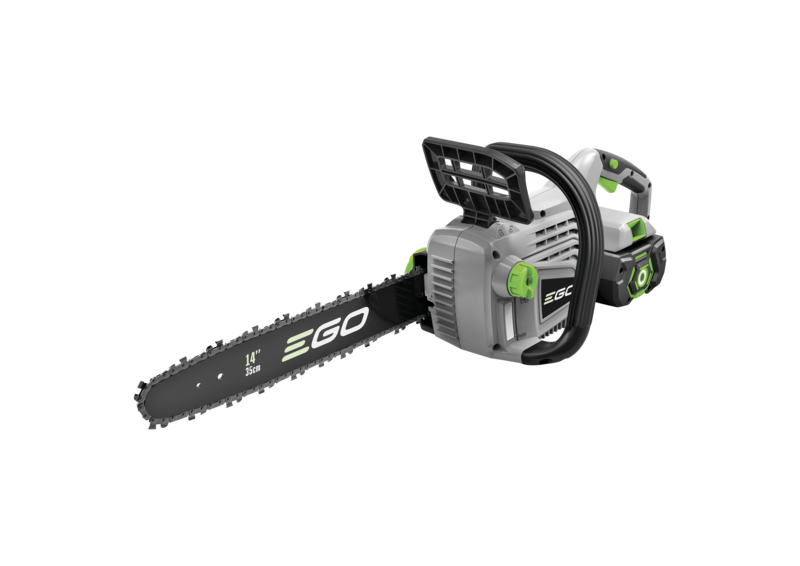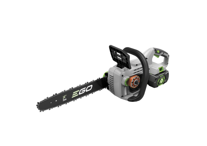 Small but mighty. The EGO Power+ CS1400E cordless chainsaw is one of the most powerful battery powered product of its kind. With a 35cm bar length, you can easily saw through branches and medium sized logs, backed up with 13.5m/s chain speed. It's fitted with a chain brake to ensure safe operation. As a kit product, you'll also receive a 2.5Ah battery and standard charger.